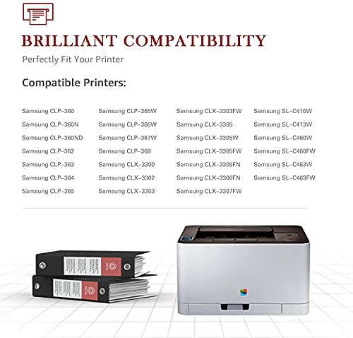 - Compatibilidad garantizada: Compatible con Samsung SL-C410W SL-C460W SL-C460FW CLP-360 CLP-365 CLP-365W CLP-368 CLX-3300 CLX-3305 CLX-3306 CLX-3305FN CLX-3305W CLX-3185 CLX-3186