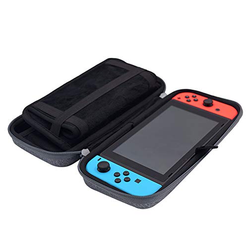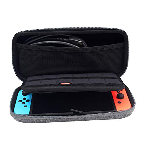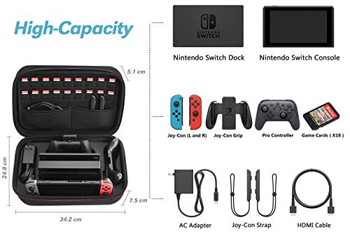 - Almacenaje Grande: Esta funda de viaje tiene compartimientos. dedicados para satisfacer todas sus necesidades en el juego, en la que pueden caber una Switch Consola, un AC adaptador, dos mandos Joy-Con, y hasta 12 tarjetas de juego.