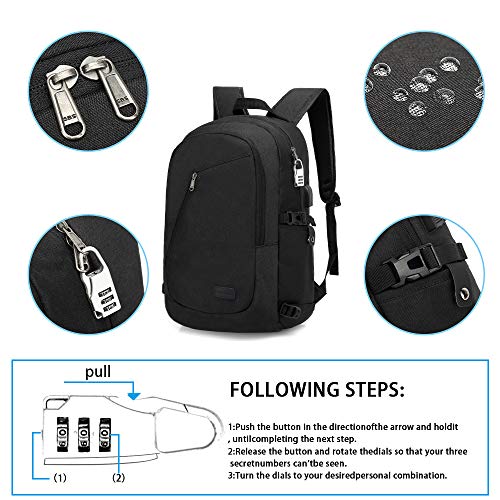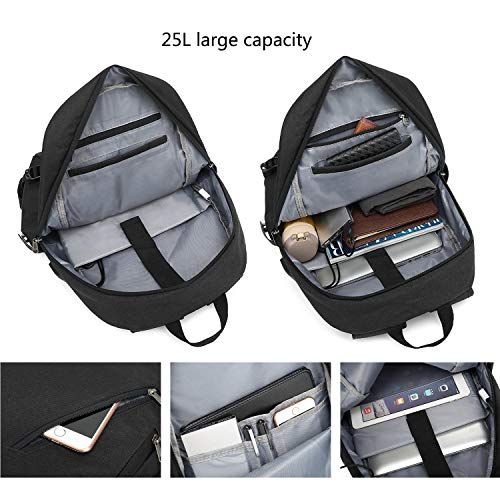 XQXA Mochila Antirrobo Impermeable,Mochila Portatil 15.6 Pulgadas Mochila Hombre con Puerto de Carga USB,Mochila Backpack para el Laptop para Ordenador del Negocio Trabajo Diario Viaje-Negro