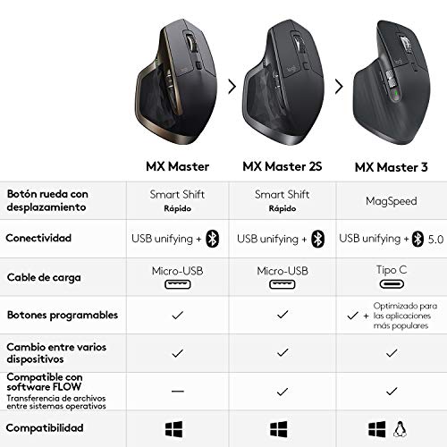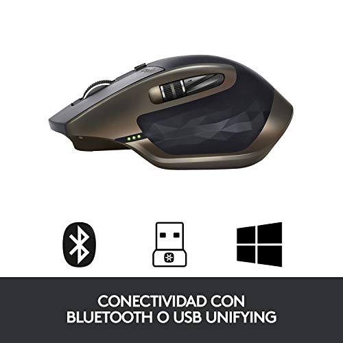 Logitech MX Master Ratón Inalámbrico, Bluetooth/2.4 GHz con Nano-Receptor USB Unifying, Seguimiento en Cualquier Superficie 1000 DPI, 5 Botones, Versión Amazon, Compatible con PC/Mac/Portátil, Negro