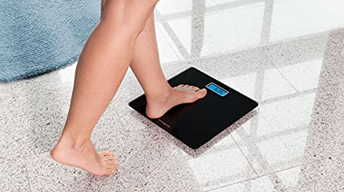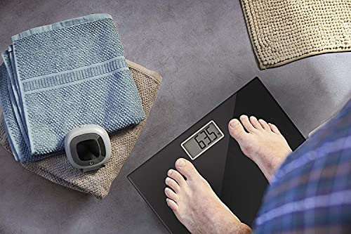 - Báscula de baño con superficie de vidrio con pantalla digital amplia con dígitos de fácil lectura de 23 mm de alto