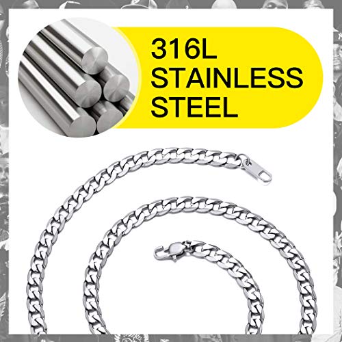 Suplight Collar Hombre Cadena Cubana Fina 4mm de Hombres Mujeres 20 Pulgadas Largo Cadenas Plateadas de Acero Inoxidable 316L