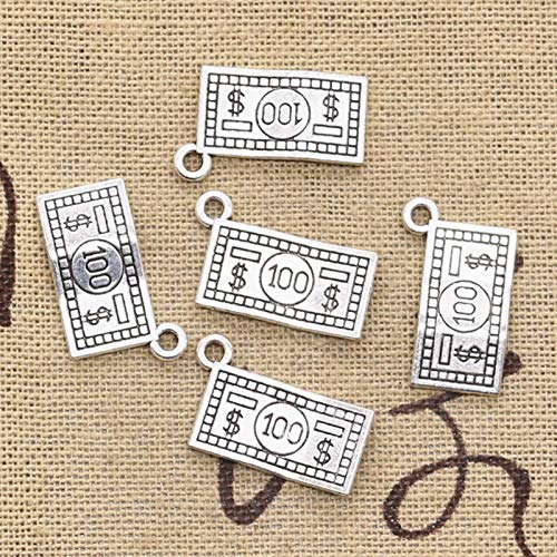 25 piezas encantos 100 dólares 10x19mm colgantes chapados en color plata antigua que hacen bricolaje hecho a mano en color plata tibetano