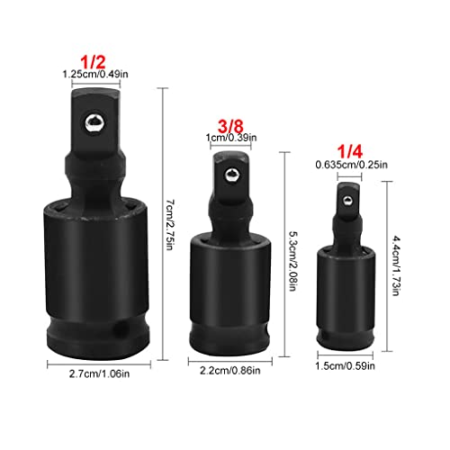 rongweiwang 3 Piezas/Set 1/2 3/8 1/4 Pulgadas Carpintería de carpintería Metalujedación de metalEl Conadjetas de zócalo de Llave Impacto de Aire Impacto de 360 Grados