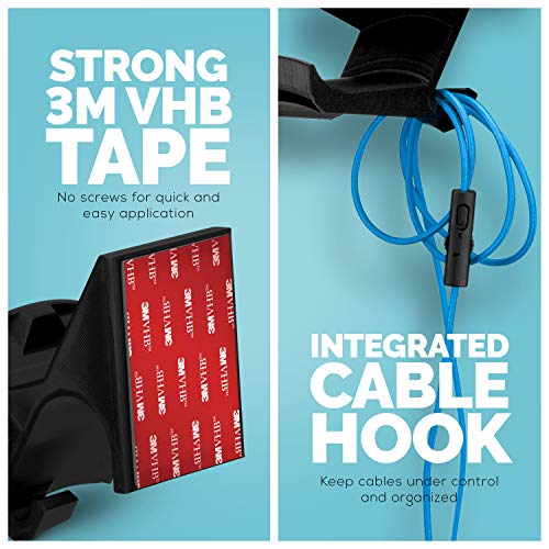 - Instalación segura: nuestro controlador de juego y soporte universal para auriculares viene con cinta VHBTM preinstalada y se puede instalar en casi cualquier lugar – en escritorios, estantes, armarios, superficies de vidrio, parte trasera del televisor/monitor y muchos más. Go Pro confía en VHB para asegurar sus cámaras durante actividades extremas, por lo que puedes estar seguro de que no te defraudará, ni tus controladores. Límite de peso máximo: 1,5 kg.