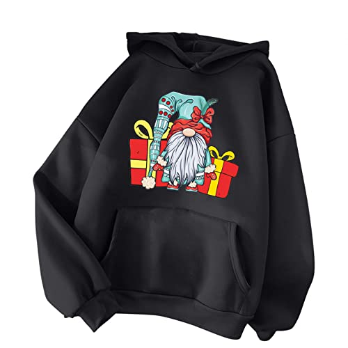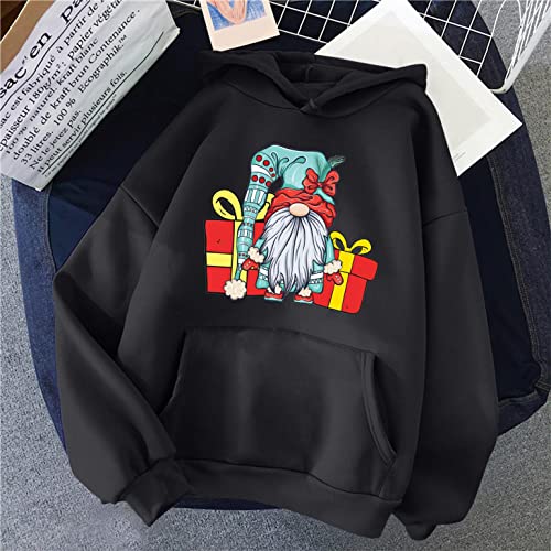 NHNKB Sudadera con capucha para mujer, diseño navideño, Negro , M