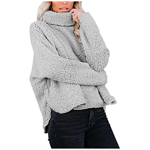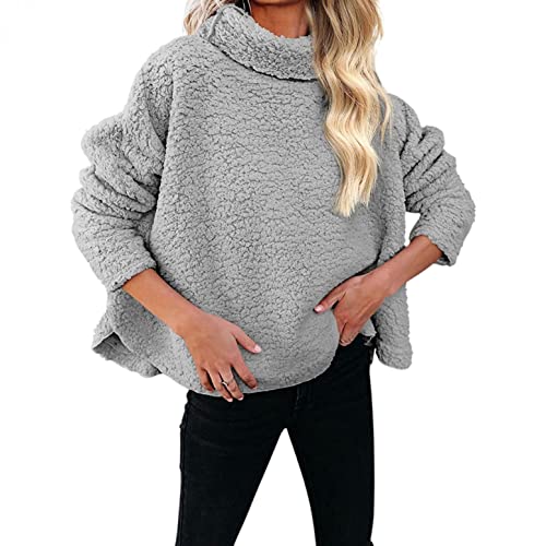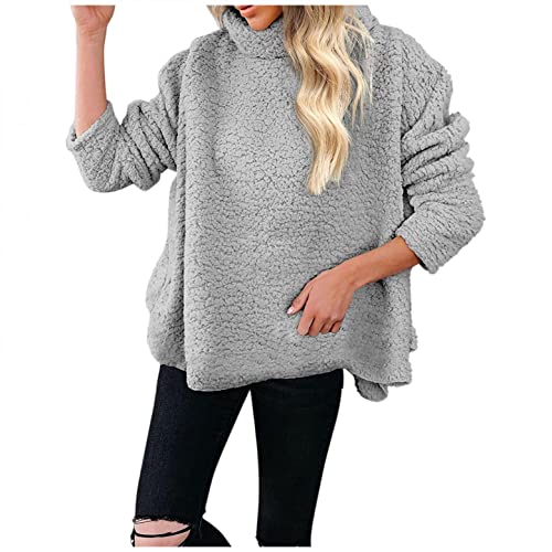 NHNKB Sudadera de forro polar para mujer, cuello alto, sudadera de forro polar, sudadera con capucha, gris, XXXXL
