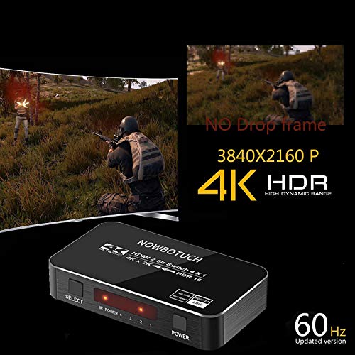 - 4 entradas 1 salida 4K a 60Hz Interruptores HDMI: NOWBOTUCH 4 puertos El interruptor HDMI admite HDR10, HDCP 2.2 (también compatible con versiones anteriores de HDCP 1.4, 1.3), admite HDMI 2.0 (RGB 4: 4: 4), color profundo de 36 bits por canal, HDMI El selector de divisor admite resolución 4K @ 60Hz, función MHL, con indicación LED.