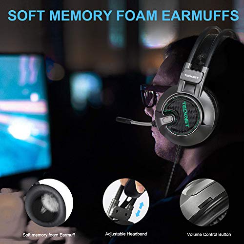 TECKNET Auriculares Gaming con Micrófono Cascos Gaming Sonido Envolvente Virtual 7.1, Reducción de Ruido Volumen Ajustable para Ordenador, Laptop