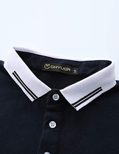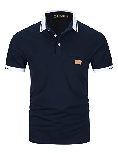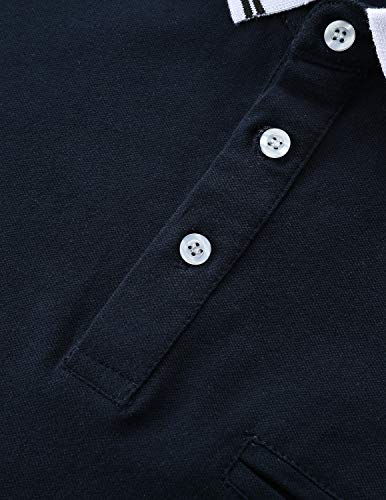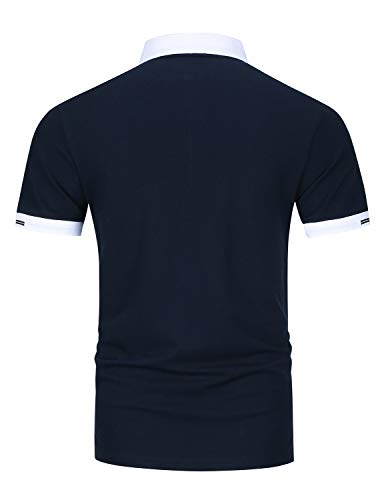 Casual Polos Manga Corta para Hombre Costura en Contraste Escote Camiseta Camisas Verano Primavera Deporte Golf Tennis T-Shirt Oficina,Azul,L