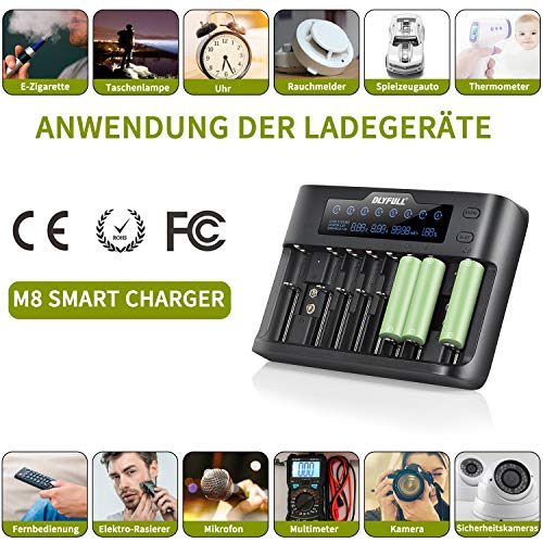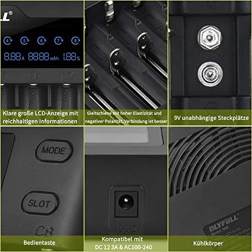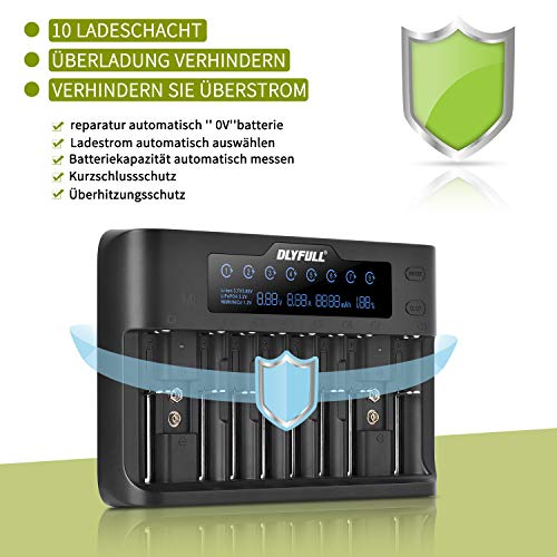 - 【Característica especial】: 10 canales de carga independientes con sistema de gestión de microordenador integrado para garantizar la alta eficiencia. La capacidad y la resistencia de diferentes baterías se pueden detectar automáticamente. (excepto batería de 9 V). Opciones de carga: Li-Ion: 2000 mA hasta 1000 mA. Ni-MH / Ni-Cd: 1000 mA a 800 mA.