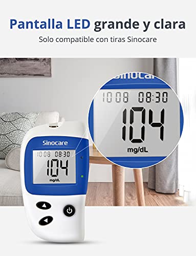 - ?Rendimiento de alto costo y práctico: bajo precio, totalmente funcional, adecuado para uso a largo plazo. Este producto ofrece las ventajas de un peso exquisito y bajo. Fácil de llevar a cualquier parte. Esto le permite evaluar fácilmente su nivel de azúcar en la sangre mientras está de negocios o de viaje.