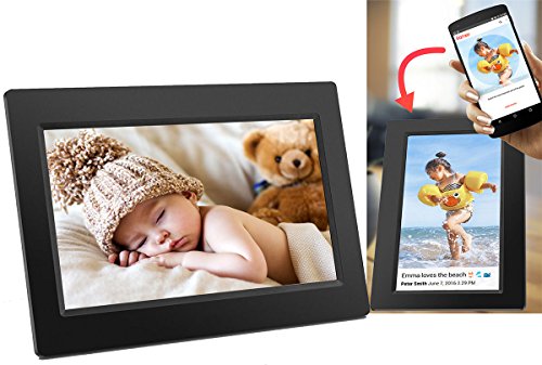 Marco de fotos digital WiFi de 7 pulgadas con pantalla táctil IPS, rotación automática, compartir fotos y vídeos a través de la aplicación, correo electrónico, Facebook, Twitter