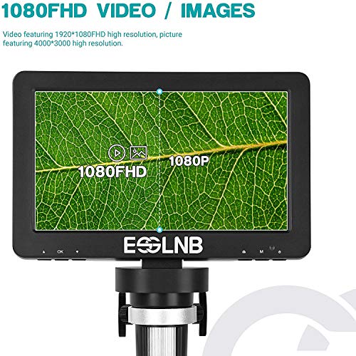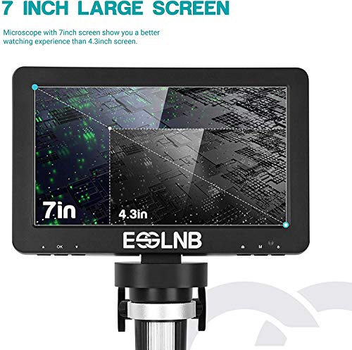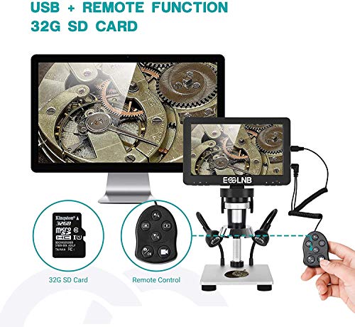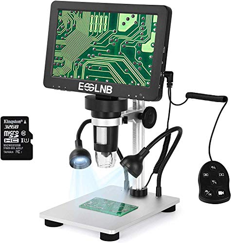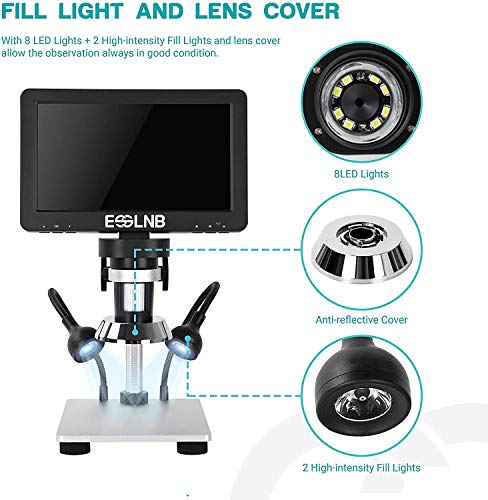 ESSLNB Microscopio Digital 7" LCD Microscopio Electronico 1080FHD Imagen con 32G Tarjeta Control Remoto 8 Luces LED Ajustables&2 Luces de Relleno Soporte de Metal Batería de Litio Recargable