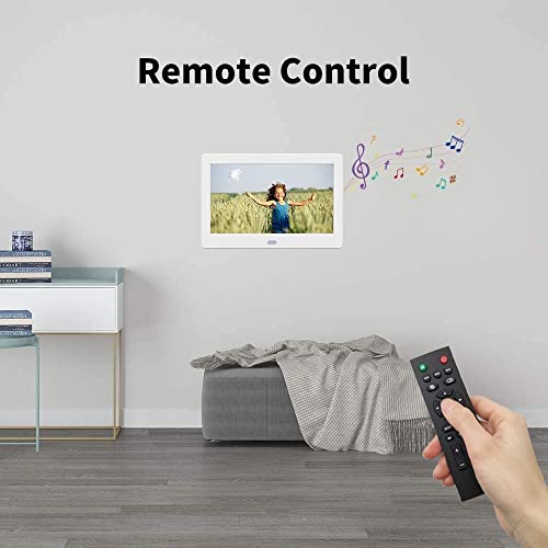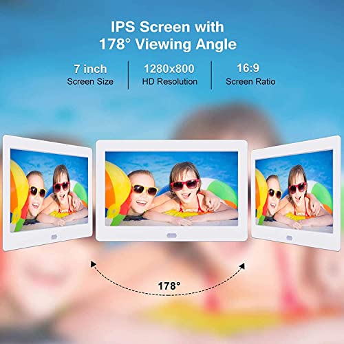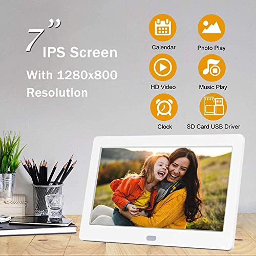 Marco Digital con Tarjeta SD de 32GB, 7 Pulgadas Marco de Fotos Digital con Mando a Distancia, Reproducir Vídeos/Música/Fotos, Utilizado como Despertador/Calendario/Cartelera/Reloj, Regalos