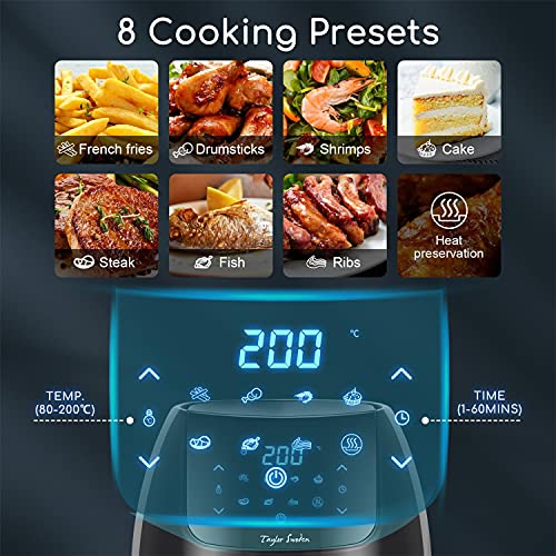 Taylor Swoden Sunbeam - Freidora sin aceite 7 L, freidora de aire caliente XXL, digital con pantalla táctil LED, 8 ajustes de cocción preestablecidos, apagado automático, sin BPA