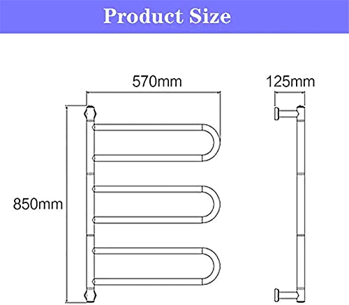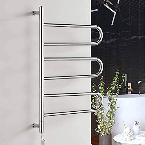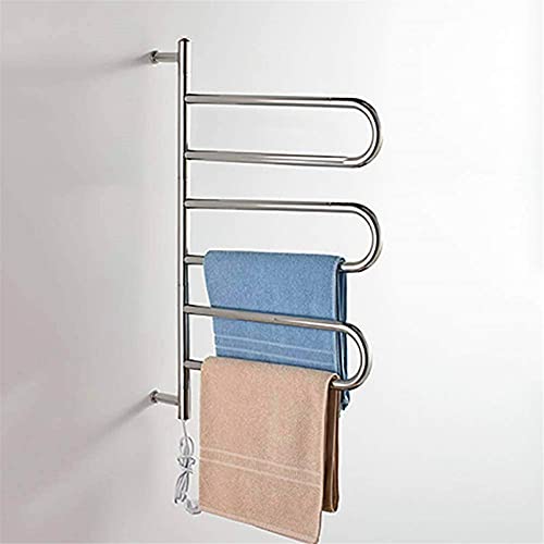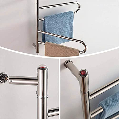 Rieles de toallero calefaccionado Calentador de toallas eléctrico giratorio de 180 ° , Toallero montado en la pared Calentador de toallero calefactado Radiador de baja potencia Acero inoxidable móvil