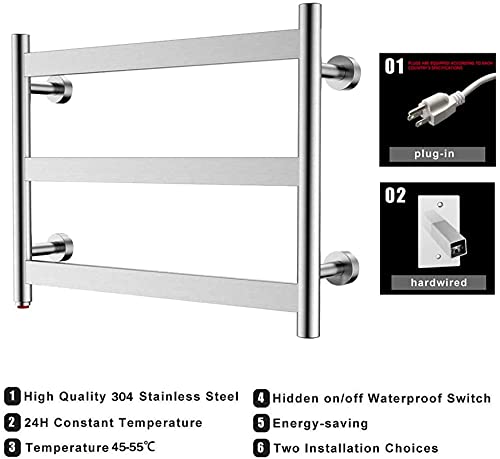 - Alta calidad: el calentador de toallas está hecho de acero inoxidable 304 duradero , IPX4 a prueba de agua y electricidad , pulido a mano , el enchufe y el voltaje se pueden configurar de acuerdo con los requisitos del cliente.