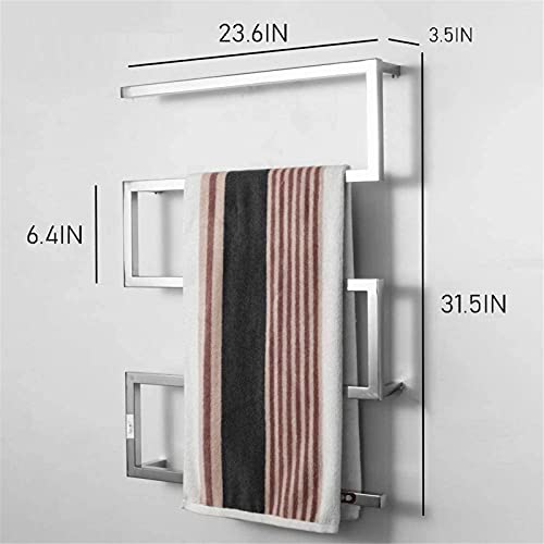Rieles de toallero con calefacción Calentador de toallas eléctrico montado en la pared , Interruptor temporizador incorporado de 2/4 horas Calentador de toallas caliente de acero inoxidable 304 para