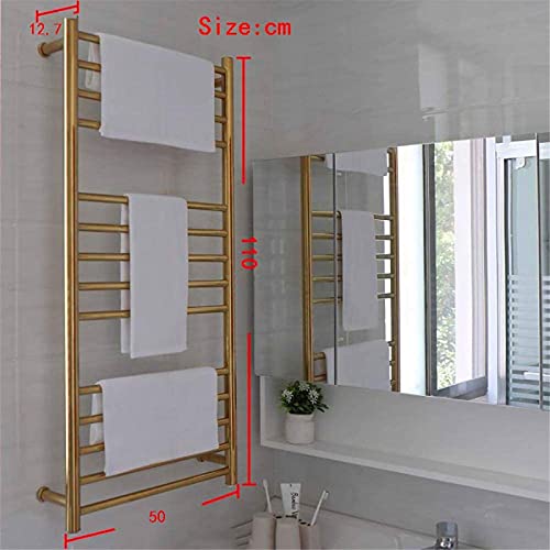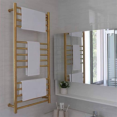 Rieles de toallero con calefacción Calentador de toallas montado en la pared , Toallero con calefacción para baño Riel calentador de toallas de acero inoxidable 304 Secador de toallas rápido Dorado