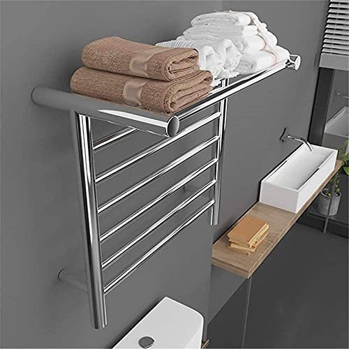 Rieles para toallas con calefacción Calentador de toallas montado en la pared , con estante superior enchufable / Toallero calefactado con cable para baño | Riel calentador de toallas de acero con in
