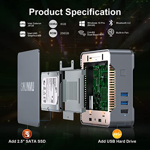 - [Pequeño pero potente] - Mini PC con ntel Celeron J4125 (caché de 2 MB, hasta 2,7 Ghz), ofrece una increíble capacidad de respuesta y fluidez en comparación con Ιntel Celeron J3544. Cambie fácilmente entre aplicaciones con memoria DDR4 de 8GB y almacenamiento en disco de estado sólido mSATA de 256GB. Muy rápido y sin retrasos ni saltos.