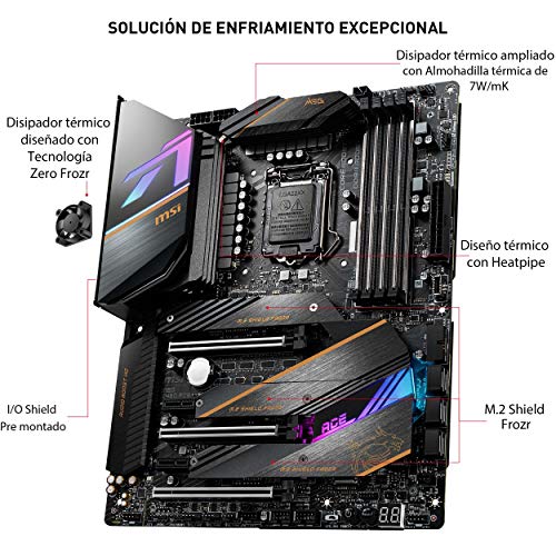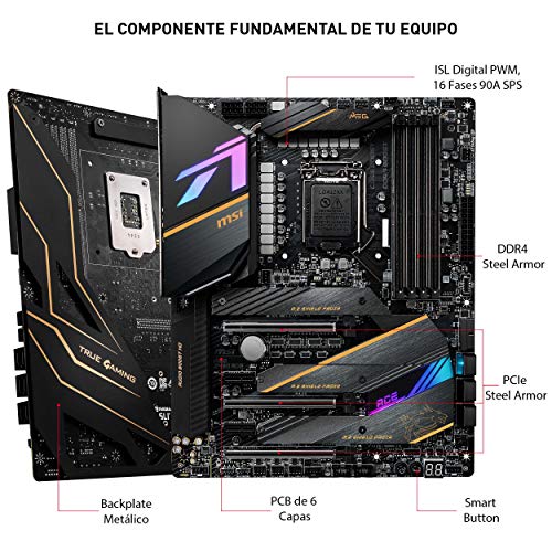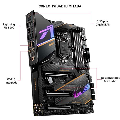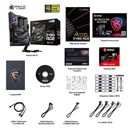 MSI - MEG Z490 Ace - Placa Base Enthusiast Gaming (10th Gen Intel Core, LGA 1200 Socket, SLI/CF, Triple Ranura M.2, USB 3.2 Gen 2x2, Wi-Fi 6, Mystic Light RGB)