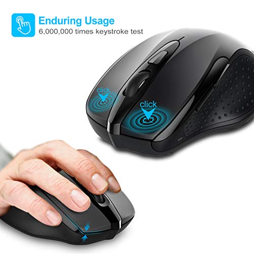 TECKNET Ratón Inalámbrico Portatil, 2.4G Mouse Inalámbrico Pro Óptico 5 Niveles 2600 dpi,6 Botones, 24 Meses Duración de Batería con Nano Receptor para Laptop,PC,Ordenador,Chromebook,Notebook