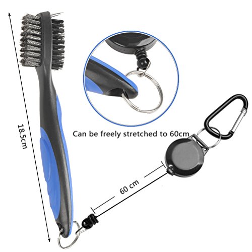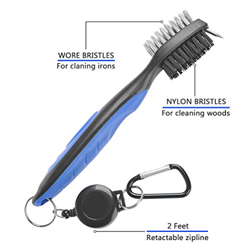 - 【Cepillo para limpiar la ranura del palo de golf】El cepillo de larga duración tiene dos cerdas para una limpieza rápida y eficaz.La mejor herramienta de limpieza para palos de golf y púas de zapatos, cerdas de alambre para hierro y cerdas de nailon para madera.La punta afilada con tapa protectora evita la suciedad persistente y la suciedad en la ranura,también se puede utilizar para limpiar zapatos de golf.La cremallera retráctil se puede unir a la bolsa, que es liviana y fácil de transportar.