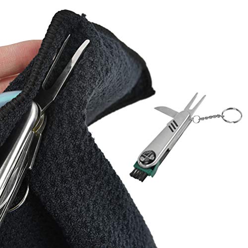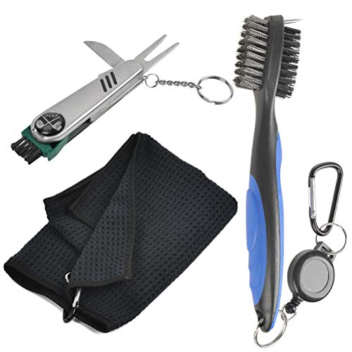- 【Kit de limpieza de golf de tres piezas】 Cada kit de accesorios de golf contiene 1 cepillo para palos de golf con limpiador de ranuras, 1 toalla de golf con patrón de gofres de microfibra y 1 todo en uno con marca de bola Herramientas de golfista de acero inoxidable.