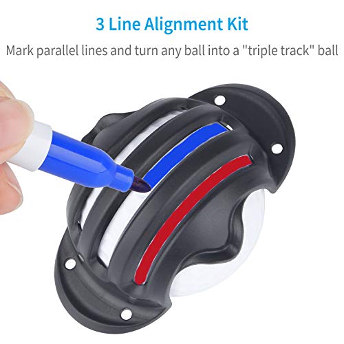 - El kit de alineación de 3 líneas negras con diseño ranurado es adecuado para marcar líneas paralelas en la pelota de golf y puede convertir cualquier bola en una bola de "triple pista".