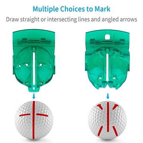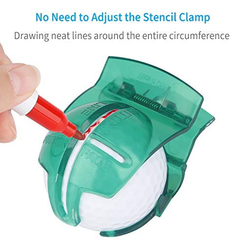 - La abrazadera de marcador de plantilla verde envuelve la bola de golf para hacer que dibujar líneas limpias y rectas sea muy fácil y puedes dibujar una línea alrededor de toda la circunferencia sin ajustar la abrazadera.