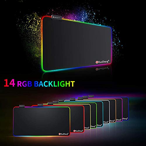 - 【14 Modos De Iluminación RGB】 La alfombrilla de ratón para juegos RGB tiene 14 modos de iluminación RGB, que incluyen rojo, azul, verde, morado, cian, amarillo, blanco, onda alterna, onda sincronizada, flash alterno, cambio rojo alterno, luces apagadas, sincroniza la respiración, alterna la respiración, proporciona colores y efectos visualmente impresionantes.