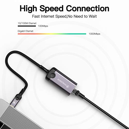 POSUGEAR Adaptador USB C Ethernet, USB C a RJ45 Gigabit Ethernet LAN Cable Adaptador de Red 1024 Mbps Compatible para Windows 10/8.1/8/7/XP/Vista,Linux, Nintendo Switch, XPS15/13, Samsung Tabs