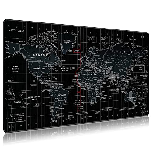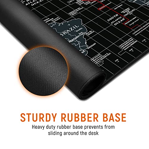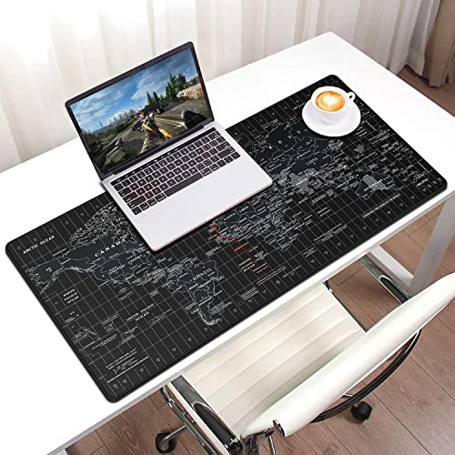 JIALONG Alfombrilla Raton Multifuncional Grande Gaming Mouse Pad XXL 900x400mm, Lavable, Antideslizante Diseñada para Gamers, Trabajo de Oficina - Negro Mapa Mundi
