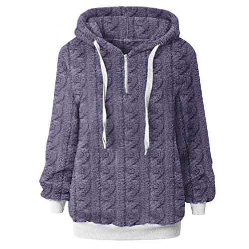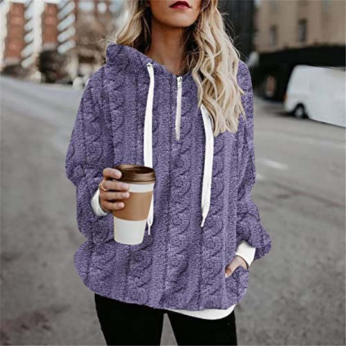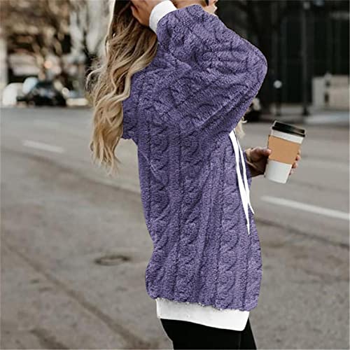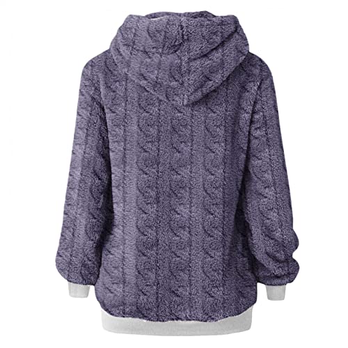 NHNKB Sudadera de invierno para mujer, grande y suave, con capucha, de forro polar, mullida, de manga larga, morado, L
