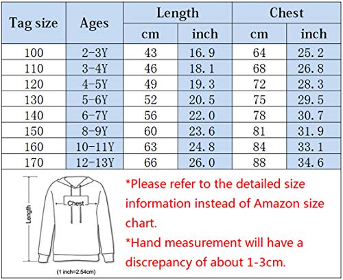 - Tamaño: 2-3Y--Tag size100; 3-4Y--Tag size110; 4-5Y--Tag size120; 5-6Y--Tag size130; 6-7Y--Tag size140; 8-9Y--Tag size150; 10-11Y--Tag size160; 12-13Y--Tag size 170.Utilice nuestra Guía de tallas en las descripciones de los productos por favor, no use la Guía de tallas de Amazon.