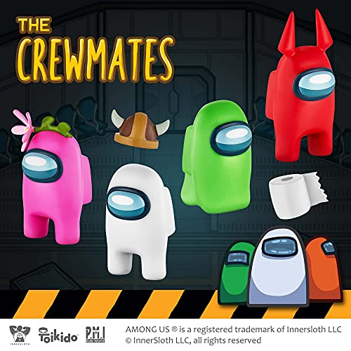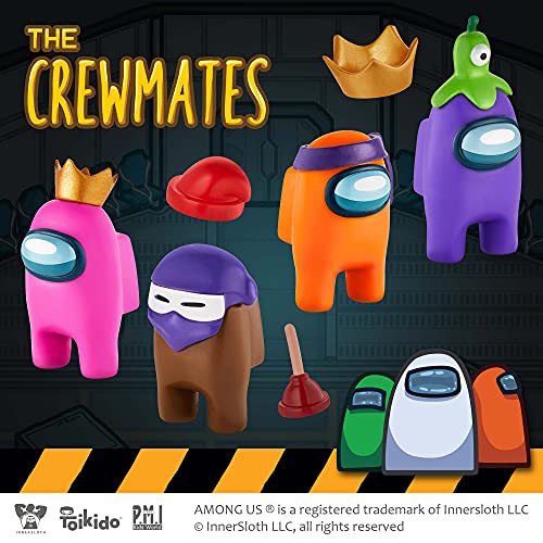 - ¡CONSIGUE 8 FIGURAS DE TRIPULANTES DE AMONG US AL MISMO TIEMPO! Estos pequeños juguetes representan a los personajes del juego, incluido (según el paquete) el médico de la plaga y el cadáver (¡infórmalo!). Los tripulantes vienen en diferentes colores y sombreros, con los icónicos tocados de huevo, flor y papel higiénico, ¡como en el juego! El paquete esconde una de las figuras que contiene, para recordarle que siempre hay un impostor entre nosotros. ¡Descubre quién es el impostor esta vez!