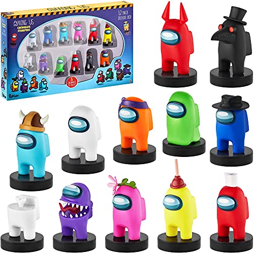 Sellos para niños Among US | 12 Sellos de Among Us en 1 Caja de Lujo | Regalos de Fiesta Among Us y coleccionables | Juguetes para niños y niñas | Mini Juguetes para Fiestas de Among Us | por P.M.I.