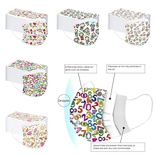 KYZRUIER 50PC Mascarillas Niños, Mascarillas Infantil Dibujos Animados para Actividades Aire Libre Patrón Escuela Fiesta Patrón De Dibujos Animados De Dinosaurios Colores (A1-3)