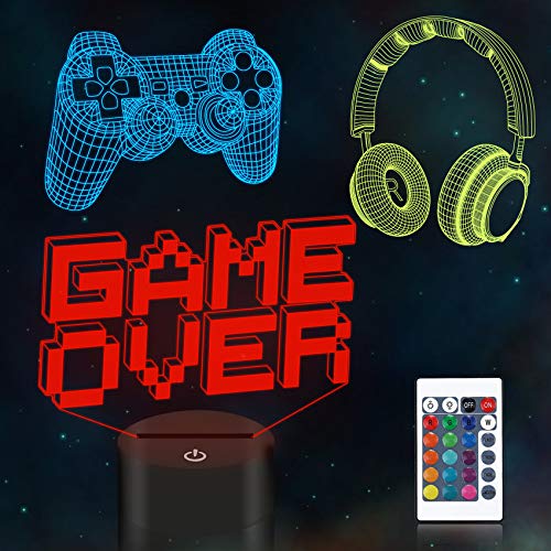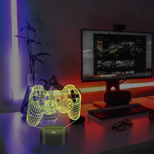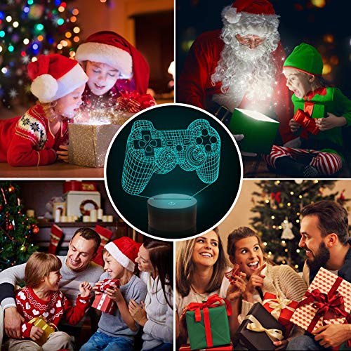 Lámpara CooPark Pixel Game Illusion, Luz nocturna 3D para gamepad (3 patrones) con control remoto 16 colores que cambian la decoración de la sala de juegos Los mejores regalos de cumpleaños