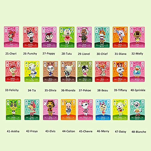 24 piezas Tarjetas de juego NFC Tag para Animal Crossing, (No. 25-No. 48) Tarjetas de juego Nfc con estuche de cristal Compatible con Nintendo Switch / Wii U