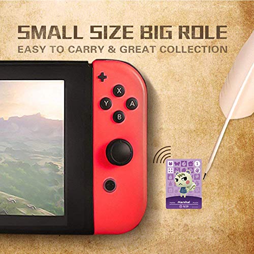 - Contenido: 1 caja transparente con un juego de 24 minitarjetas de juego para Amiibo Animal Crossing New Horizon y New Leaf. Permiten invitar a nuevos aldeanos a su isla, como los Amiibo.