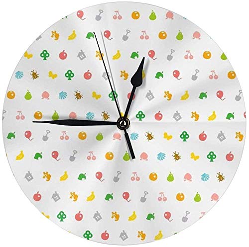 NIUMM Reloj De Pared Animal Crossing Hhd Pattern Reloj De Escritorio Redondo Silencioso Reloj De Cubo para Dormitorios Cocina