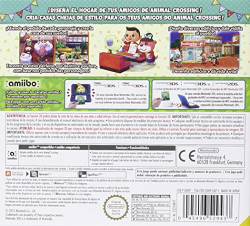 - Visit other players' homes and towns through your local wireless connection or online play for creative inspiration, or to socialise with up to three other players at once. Show off your custom designs and cool new outfits by posting your in-game screenshots with Nintendo 3DS Image Share.