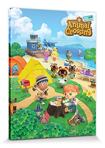 1art1 Animal Crossing - New Horizons Island Life Cuadro, Lienzo Montado sobre Bastidor (80 x 60cm)