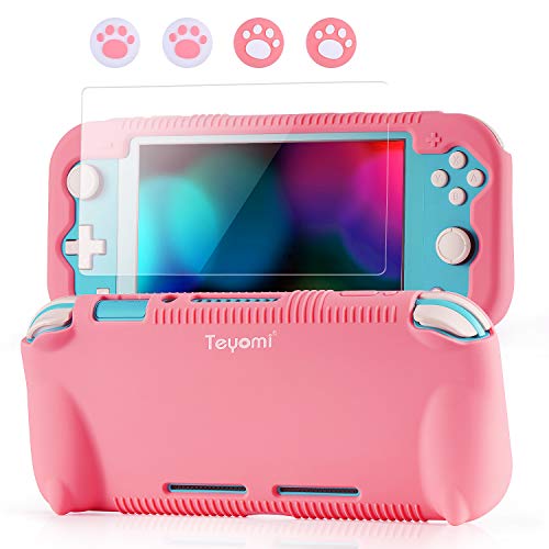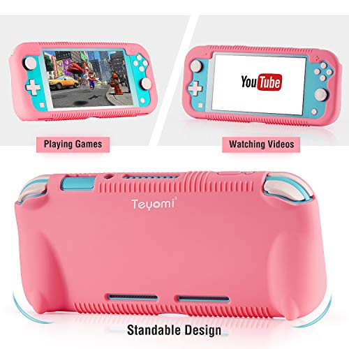 Teyomi - Funda de Silicona para Nintendo Switch Lite con Protector de Pantalla, 4 Piezas Joystick Tapas y Ranuras para Tarjetas, Carcasa con Soporte, diseño Resistente a Golpes y arañazos …