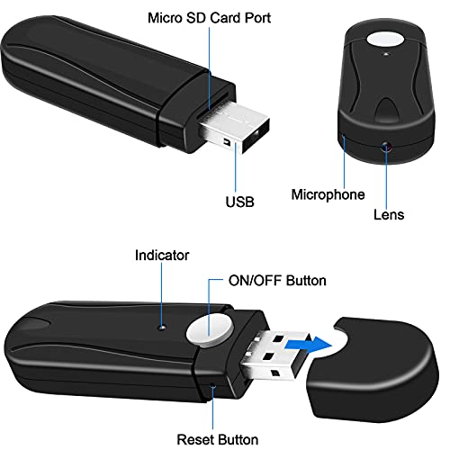 Cámara Oculta UYIKOO HD 1080P Mini Cámara Espía 2 en 1 Cámara Espía Oculta y Cámara de Disco USB con Tarjeta SD de 16 GB Admite Grabación en Bucle