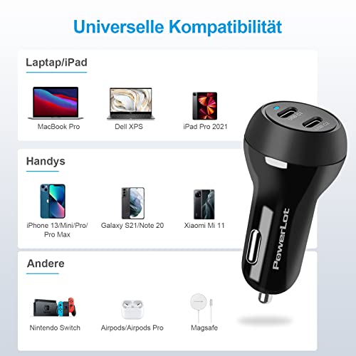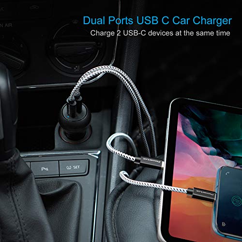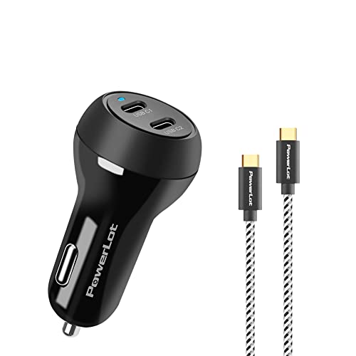 PowerLot Cargador Coche USB C, 45W PD 3.0 Doble Puerto Cargador Movil Coche Tipo-C con Cable USB C a C para MacBook Air, iPad Pro, iPhone XR/XS Max/11, Huawei P20/P30, Samsung S10/S9, LG G6 etc. Negro