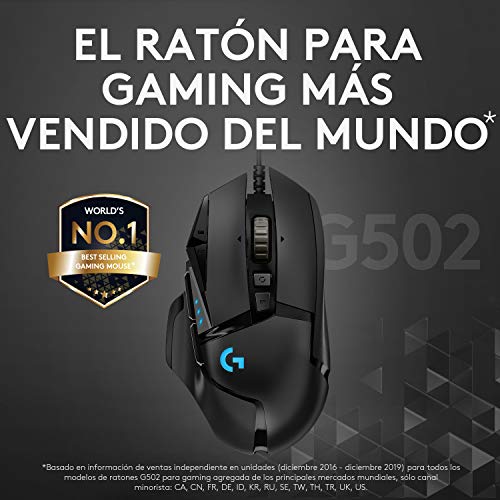 - Peso Personalizable: Ajusta el tacto y el deslizamiento del ratón. G502 HERO incluye cinco pesas de 3,6 g que se pueden usar en diversas configuraciones de peso